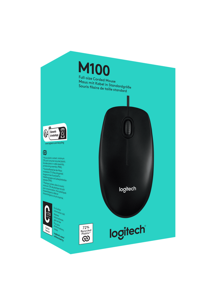 M100 con cable es el mouse de tamaño normal para uso ambidiestro, listo para lo que tú quieras. Solo conecta el cable en el puerto USB y al instante estarás usando un ratón que sencillamente funciona.